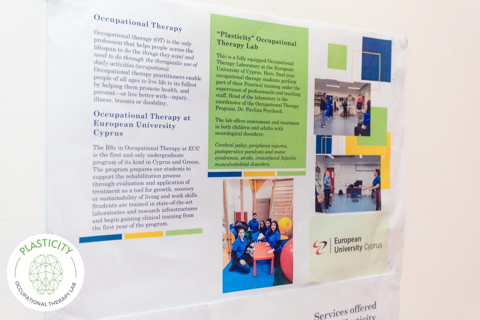 The Centre for Health, Occupation and Rehabilitation (CHOP), is fully funded by the European University of Cyprus (EUC). We bridge theory with hands-on training, providing students with real-world clinical experience and research opportunities to advance occupational therapy.